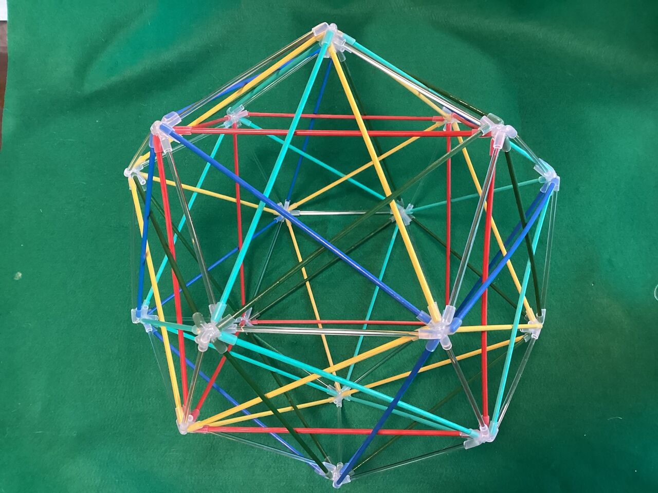 レオナル・ダ・ビンチの多面体 20・12面体はフラクタル自然数線分1の直線の長さを適当に定義して60本の線分を30ヶ所の複素数点を共有して繋げば、3次元空間にその姿を現すが、ダビンチのように正五角形の形を描いてから中の面を切り取ると言う方法を取らねば、正五角形の5本の線分は正五角形の角度を保って形を維持することは出来ないので、大きく歪む。